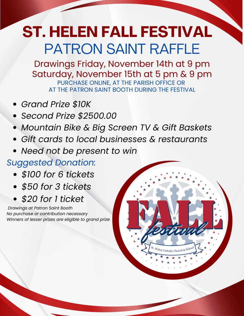 For Parishioners with students attending Catholic School or St. Helen Faith Formation classes